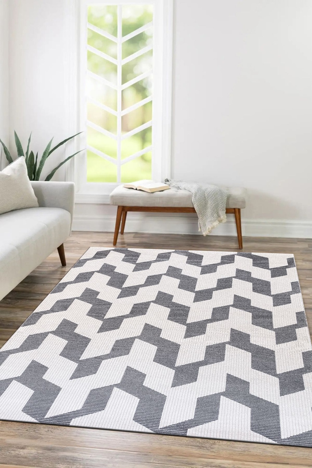 Elmina Beyaz Açık Gri Yumuşak Konforlu Rug