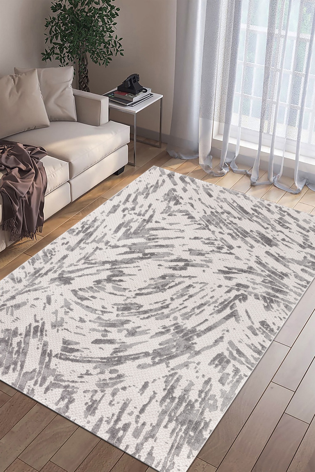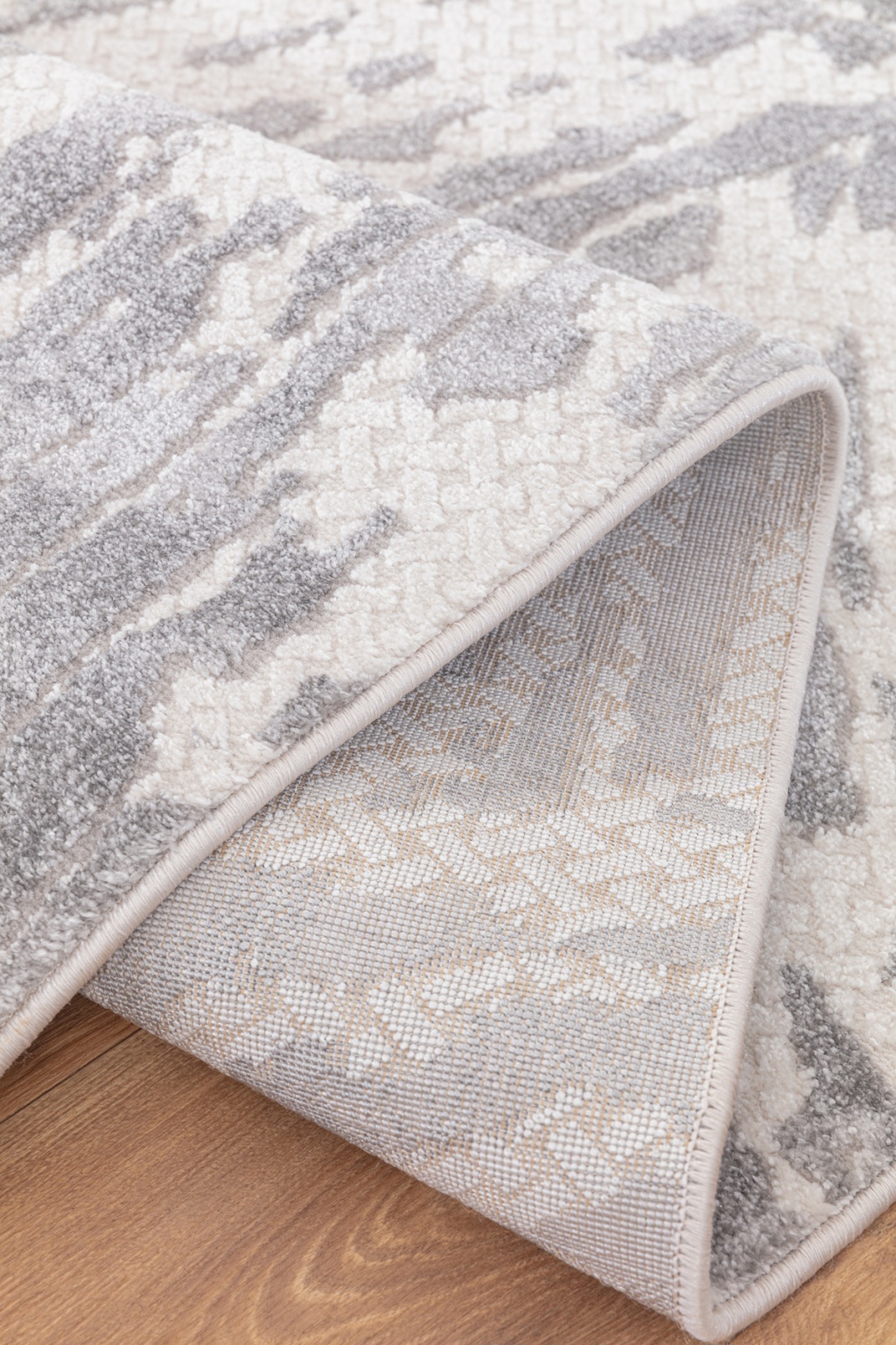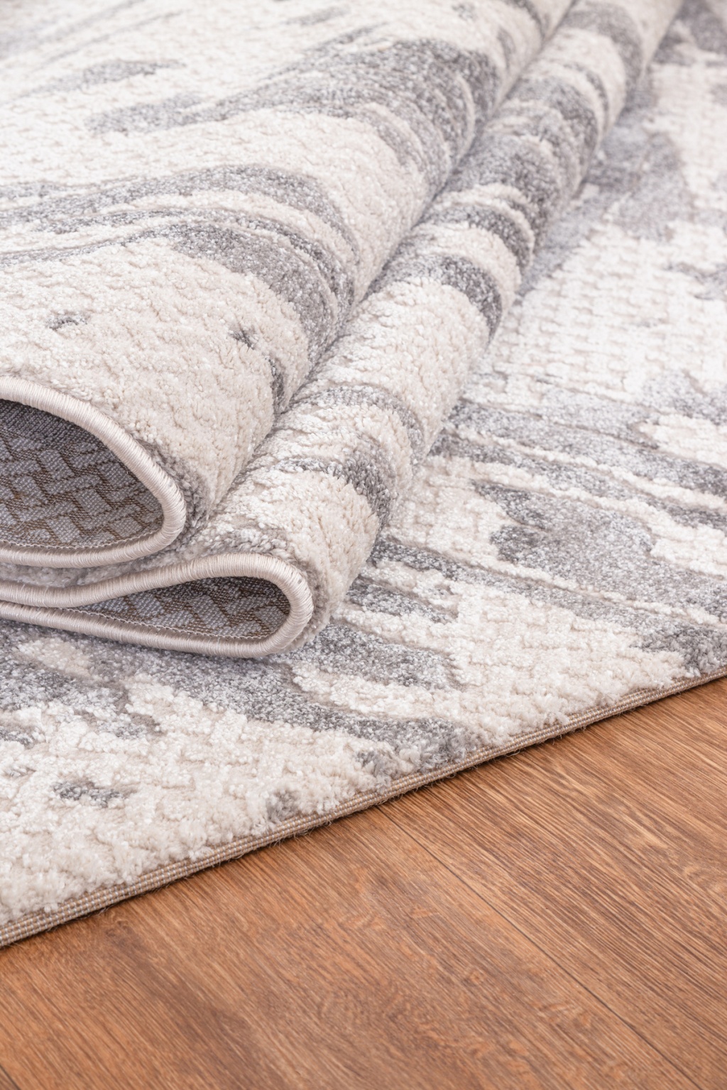 Elmina Beyaz Açık Gri Yumuşak Konforlu Rug F0330