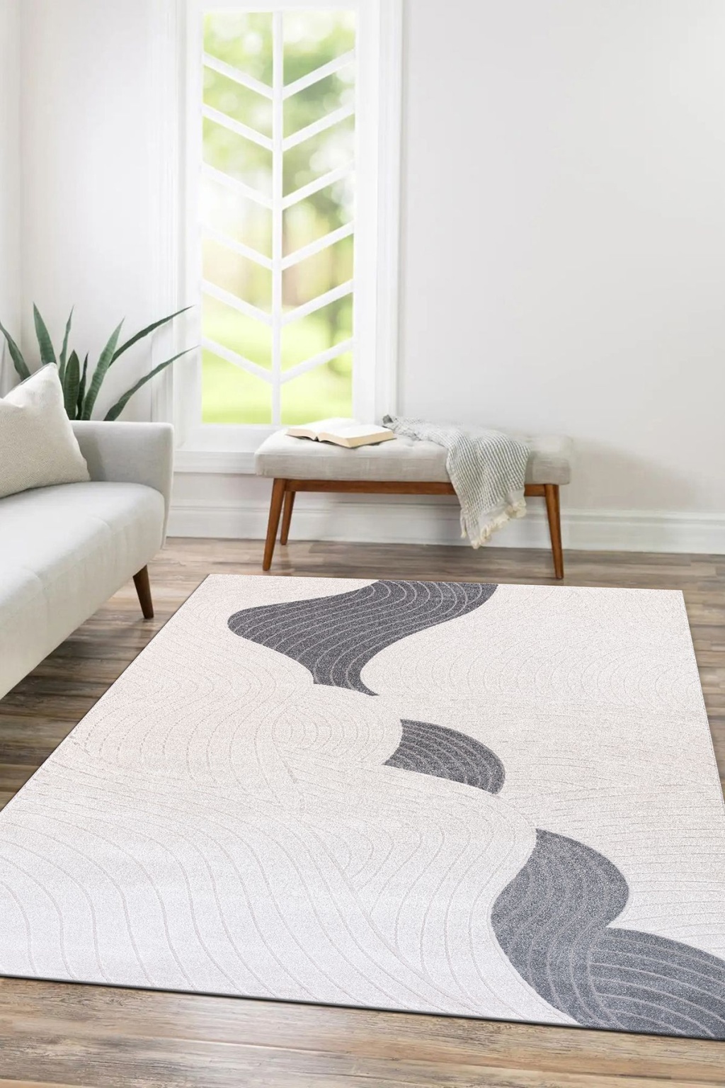 Elmina Beyaz Gri Yumuşak Konforlu Rug