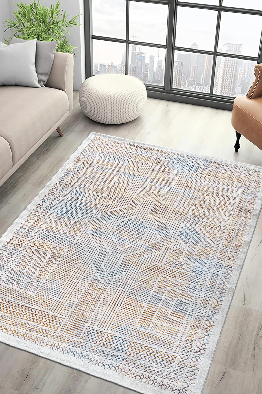 Paradise Beyaz Mavi Yumuşak Konforlu Rug M0147